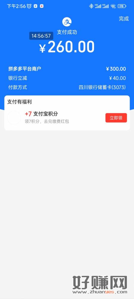 之前开过四川银行的 去存入260 拼多多300-40买沃尔玛