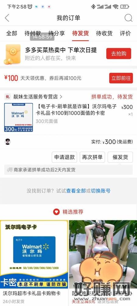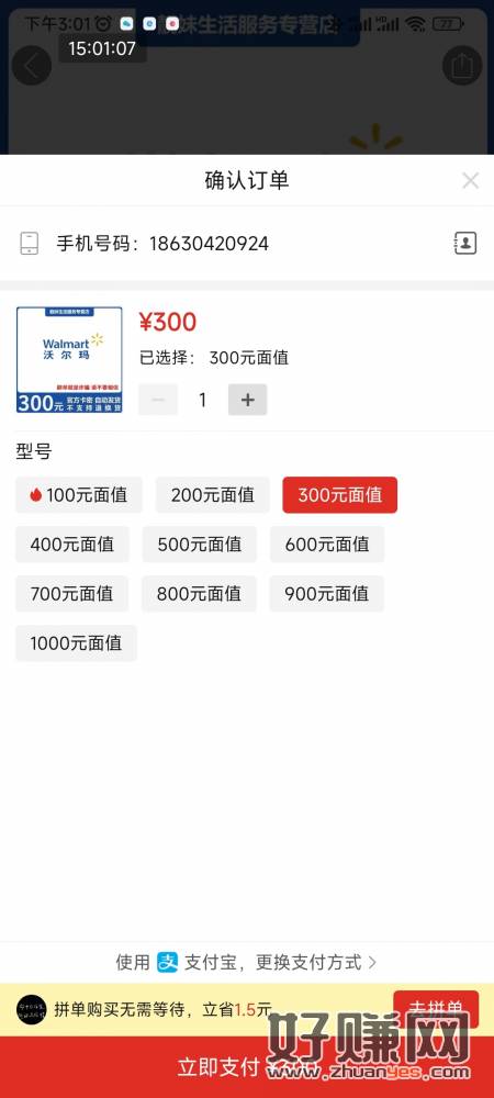 之前开过四川银行的 去存入260 拼多多300-40买沃尔玛 推荐 店铺搜靓妹生活服务专营店 拼多多App下单300选项 点单独购买 用支付宝 立减40