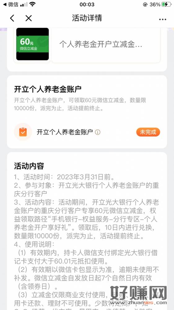 光大养老金又有了,之前权益分行里不出任务的现在去看看,不过现在只有60了要开重庆的