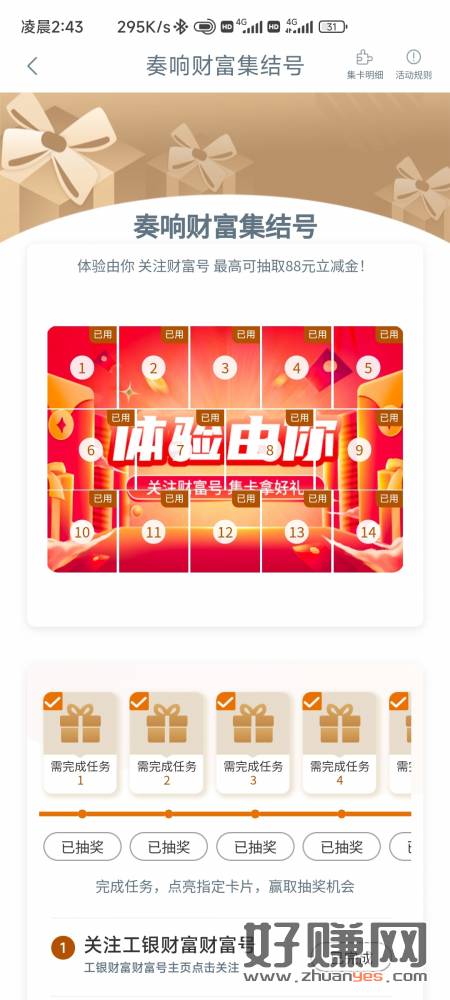 工行这个活动,取消关注重新关注抽奖14次