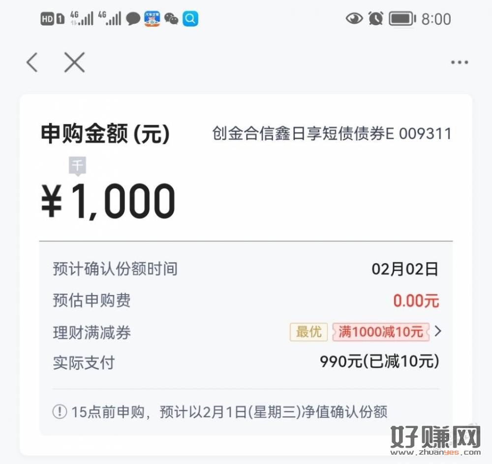 卡券包里,1000抵10,买009311,买卖满7天无手续费