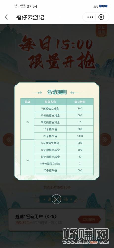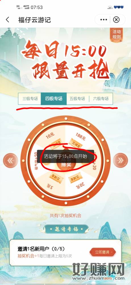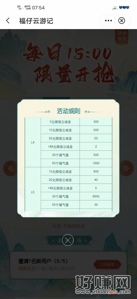 中国银行APP福仔云游记 天天抽奖 抽立减金活动新的一月又开始了 要三级才可以抽奖 下午三点 自己记得去 如果不记得 那就调好闹钟 一个月只能中一次立减金 提前58.59分进去 一直狂点直到转盘转动 不要卡点进去 做任务升级领福气值 等级越高立减金越大 有中国银行的都去 如果找不到活动就首页搜索 3456级才可以抽 这是保底活动 一个月都可以抽立减金 直到中为止 如果今天没中明天继续去就行了 但是你中了一次立减金 就中不了 中了也是福气值 按照我说的方法 一定行