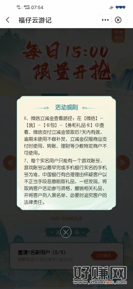 中国银行APP福仔云游记 天天抽奖 抽立减金活动新的一月又开