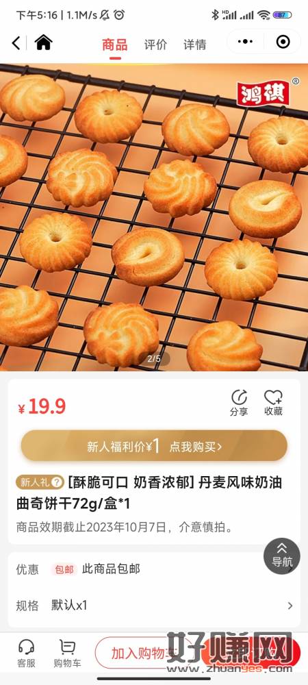 [ 快乐购 ]发福利啦!1元领丹麦曲奇饼干,酥脆鲜香入口即化,仅