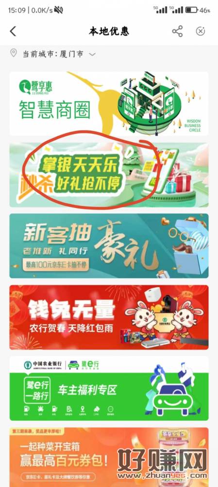 农行飞厦门本地优惠,周四掌银/左上数字人民币0.01购200
