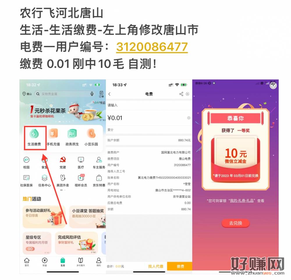 农行飞河北 模版看图 速去10毛