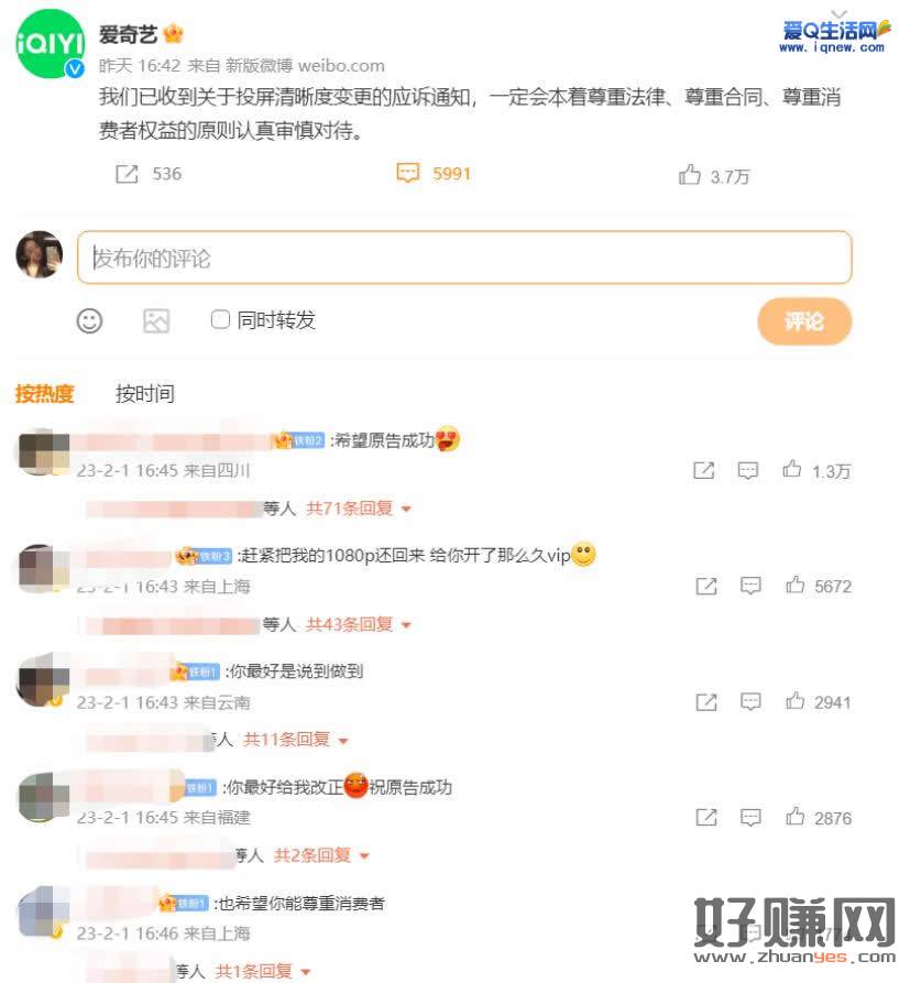 爱奇艺官方:我们已收到关于投屏清晰度变更的应诉通知,一定会本着尊重法律、尊重合同、尊重消费者权益的原则认真审慎对待