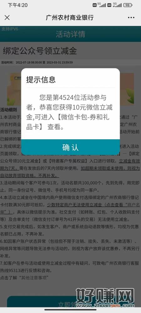 广州农商银行10元微信立减金,以前参加过的可以换V参与,关注