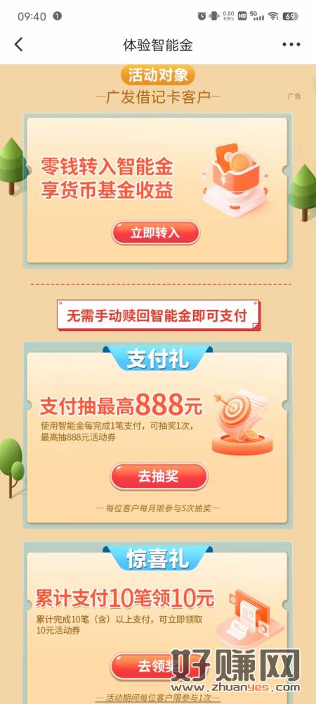 上个月做过广发智能金的可以继续用智能金转账5次,抽取5次立减