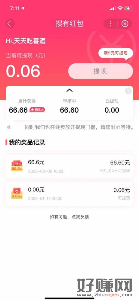 昨天参与了百度抽奖的中了66的可以提现了 今天还可以去抽我就