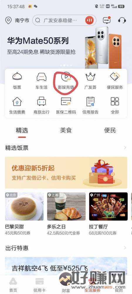 广发银行首页超级新手福利把那个首次基金定投任务做了买那个广发的第2个一元起投到时候有选项终止方式直接选无任务做完以后去领那个20块的权益券选生活福利券然后然后返回到首页生活服务第1排中间那个影视充值买e卡50的支付的时候要手动点用券不然没优惠闲卡宝卖润18.3然后首页搜索基金 我的基金 我的定投终止就行了