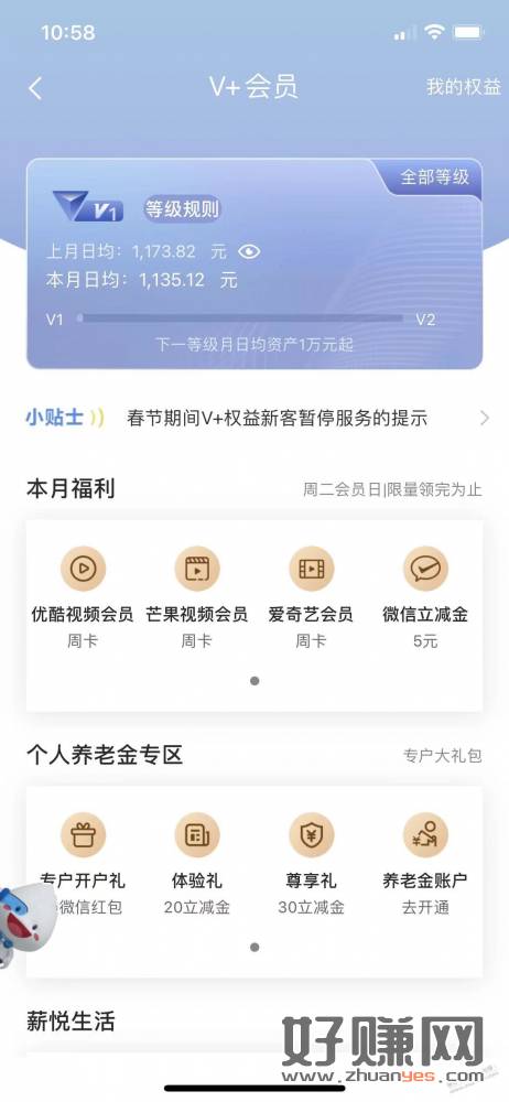 民生银行app,V+会员 5元,有名额了,v1需要日均1000