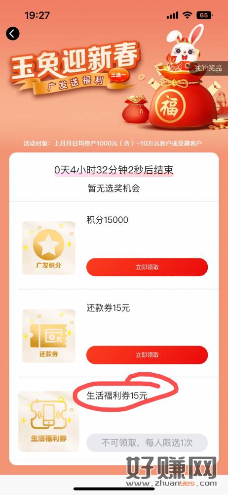 在活动广场,找到玉兔迎新春,领15生活福利券,然后在app商城买50ek, 去闲卡宝卖48,有13润