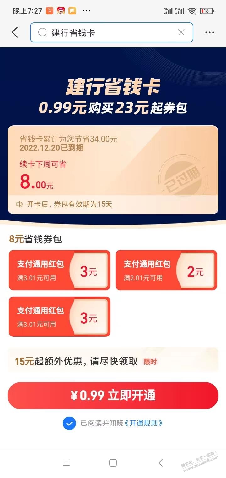 支付宝,部分号,搜 建行省钱卡。 0.99元买8元,部分号实付1分就可抵扣,多号限制设备。