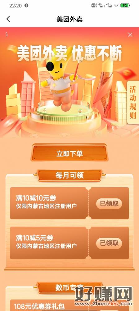 在内蒙的顺便把美团拿了