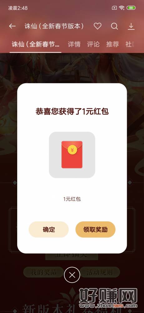 OPPO游戏中心,搜索“诛仙”下载打开抽奖,目前必中,0.5