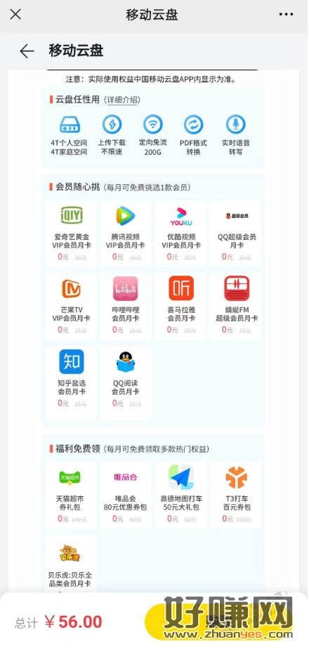 现在爱奇艺会员越来越贵了,买移动云盘的黄金会员,可以兑换各大视频平台的会员,算下来一个月的爱奇艺会员的是9.3元