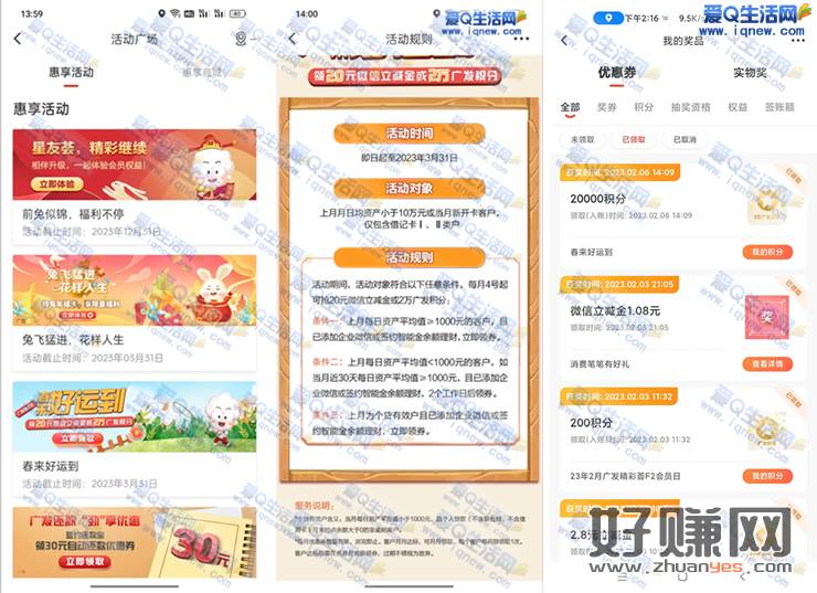 登录广发银行APP-首页【活动广场】-符合要求的春来好运到,可领2w积分或20元微信立减金,登陆app才能看到活动