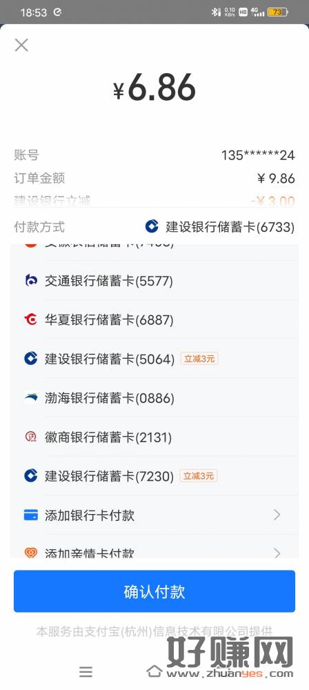饿了吗点外卖用支付宝建设银行支付减3,外卖党可以去,应该是全