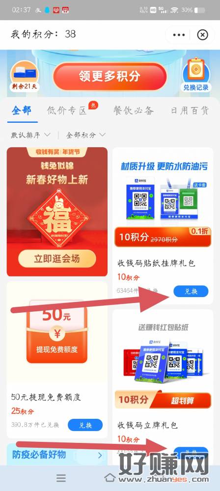 部分号有 没有换号 限时10积分兑换 收钱码礼包