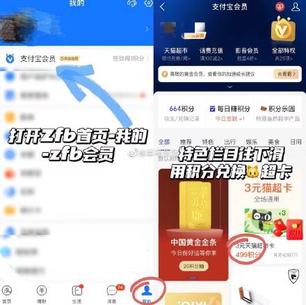 【支付宝499积分兑换3元猫超卡】新一期!支付宝APP->我的->支付宝会员->搜索“猫超卡”使用499积分兑换