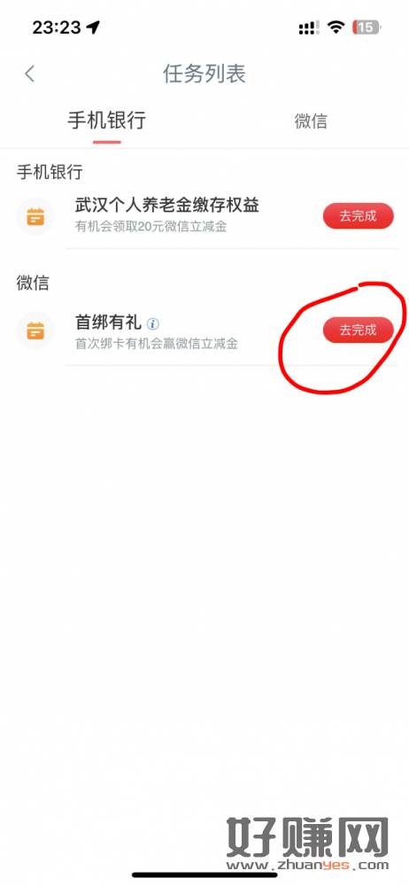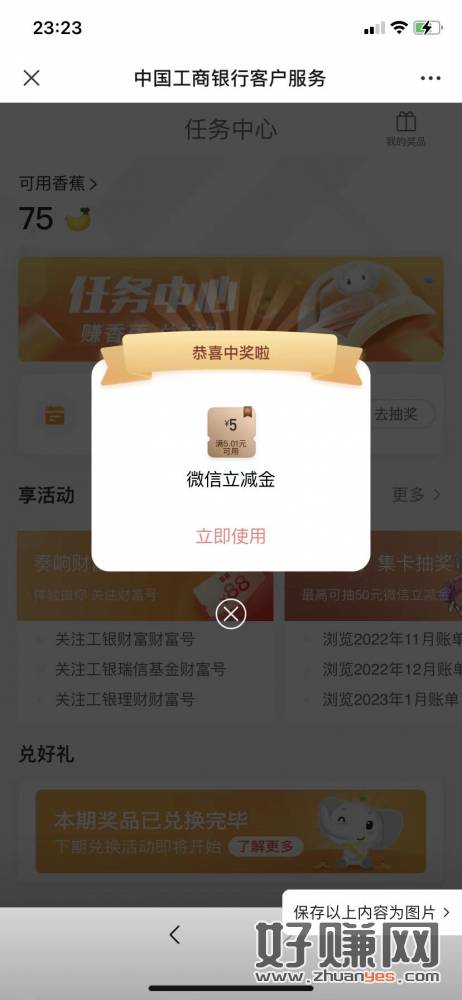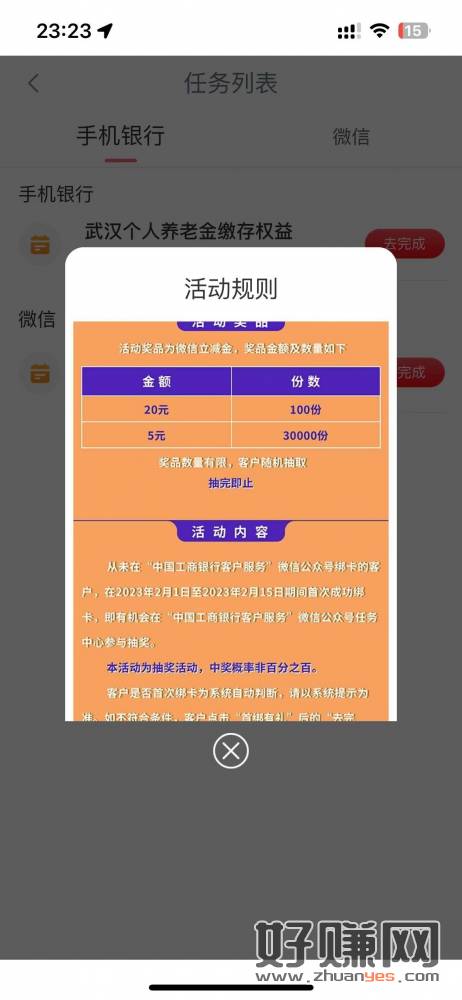 工商银行微信首绑有礼新一期,任务中心点击去完成绑定抽奖,或者