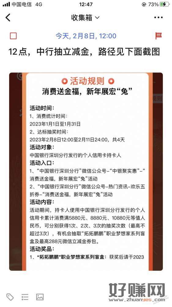 深圳 中行xing/用卡 去抽立减金