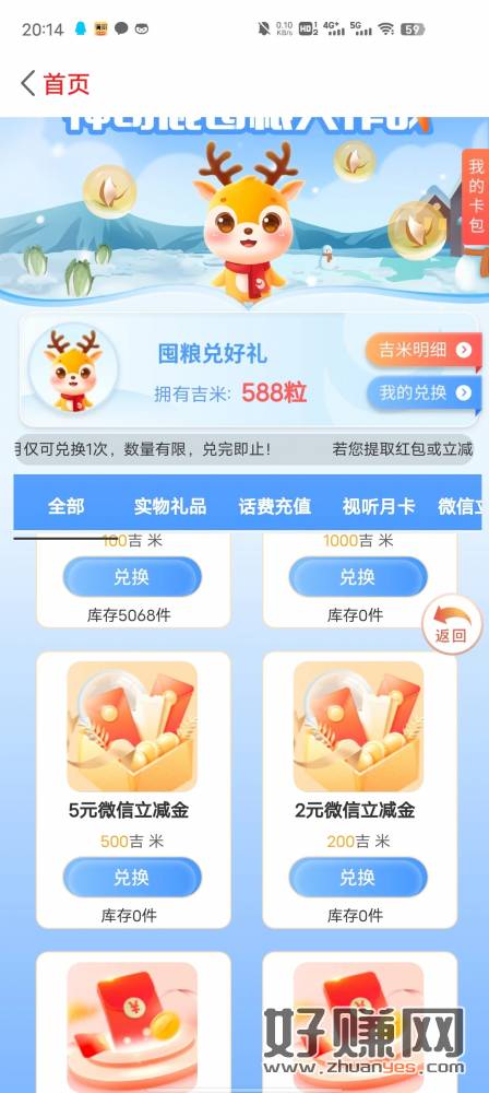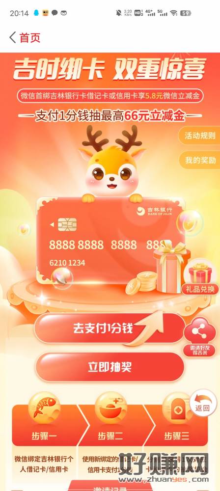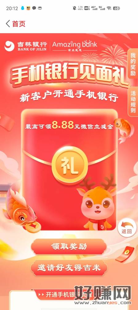 吉林银行开二类电子户,绑定支付宝5.8(但是我没有出,)新客大礼包领了8.88,支付一分领了588吉米粒,但是没有库存兑换不了