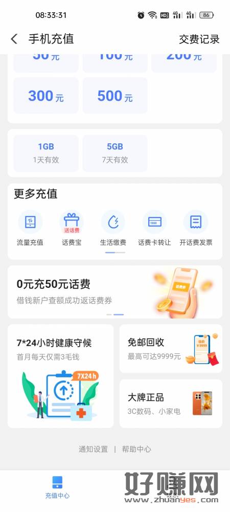 翼支付查额度0充50话费