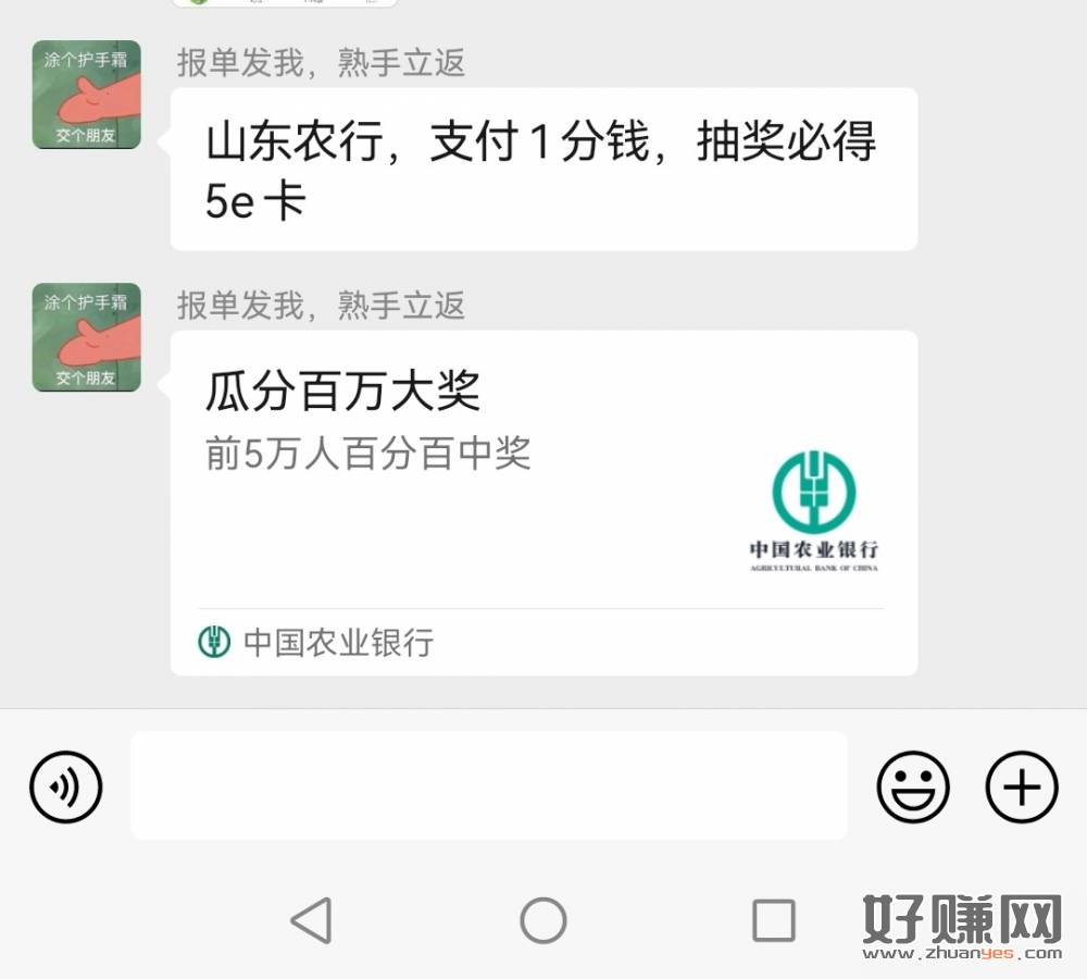 山东农行,支付1分钱,抽奖必得5e卡,外地人不行。这个不会转链,想撸的私聊吧