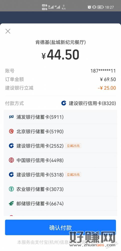 肯德基APP点餐,建行xing/用卡减25