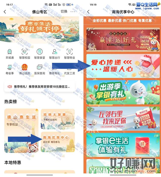1.农行APP-搜索【城市专区】-右上角手动切换位置【佛山】-南海优享中心-爱心传递 温暖人心-支付0.1元抽奖