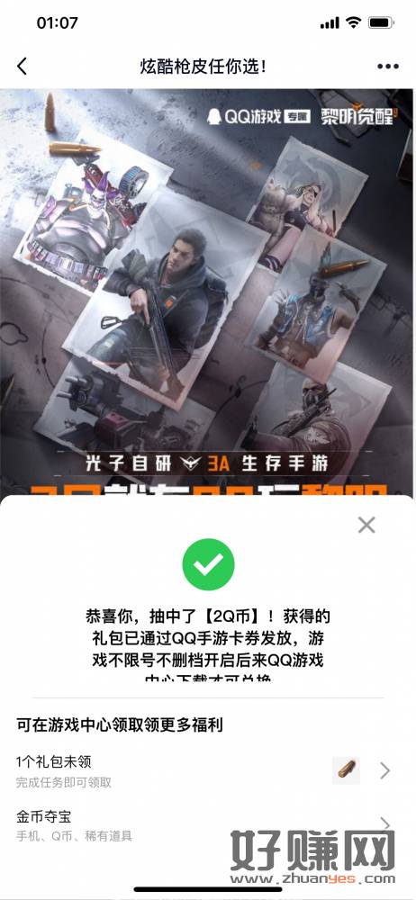 刚才没写好,重新写一下!QQ手游中心,预约黎明觉醒,可抽qb
