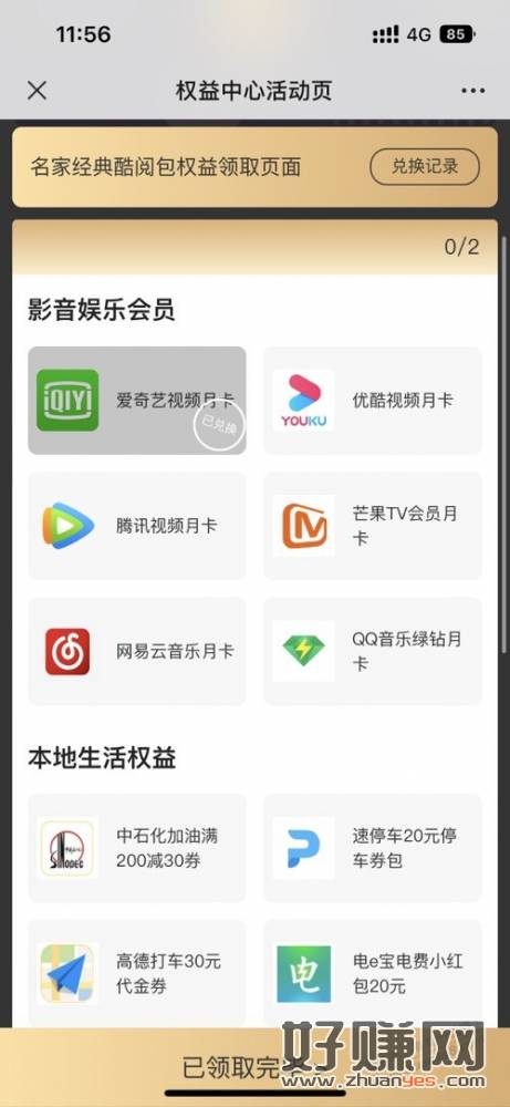 昨天没领到电费的上,还有爱奇艺月卡