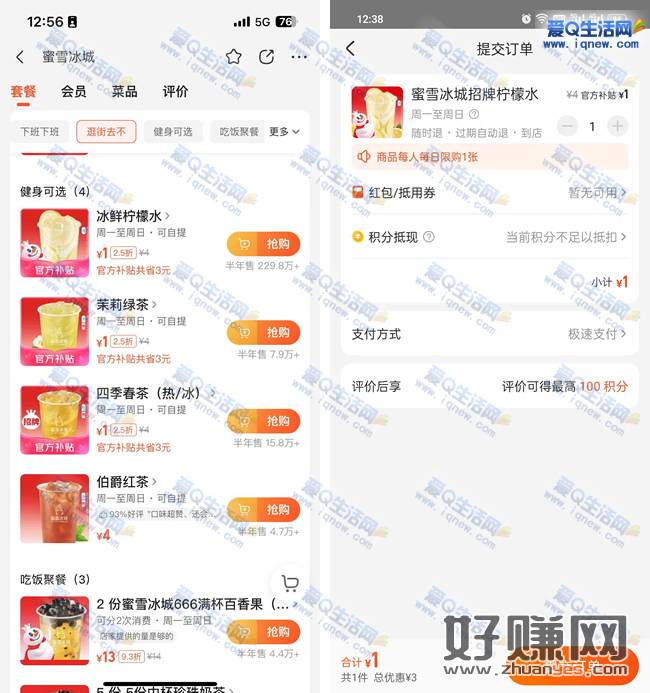 1.美团APP 搜索 【蜜雪冰城】有多款1元饮品 需购买后 凭借兑换码 到店自取