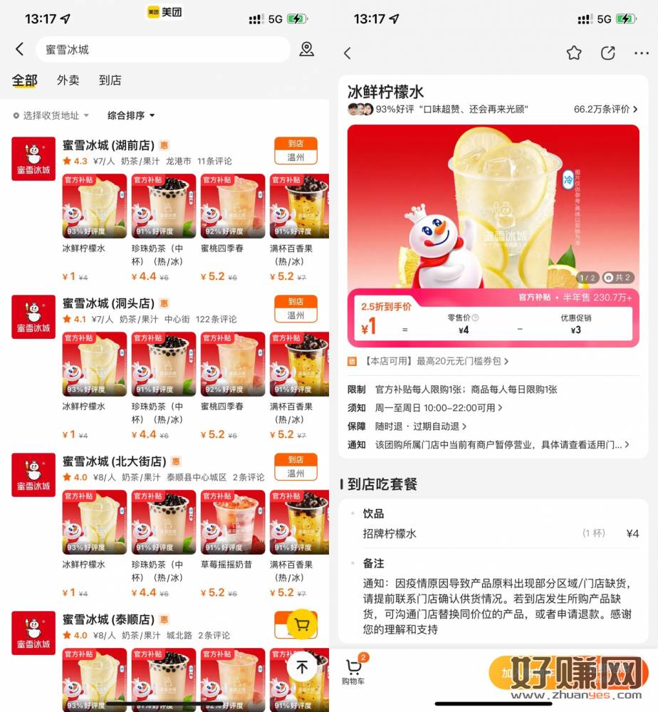 【蜜雪冰城到店1元喝柠檬水】美团APP搜索“蜜雪冰城”->大部分店都有1元柠檬水->购买后到店核销自取即可