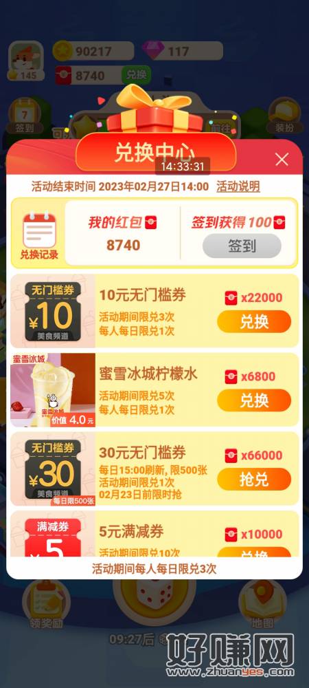 美团美食小镇签到玩游戏得6800积分白嫖蜜雪柠檬水,一般玩两三天即可兑换一次