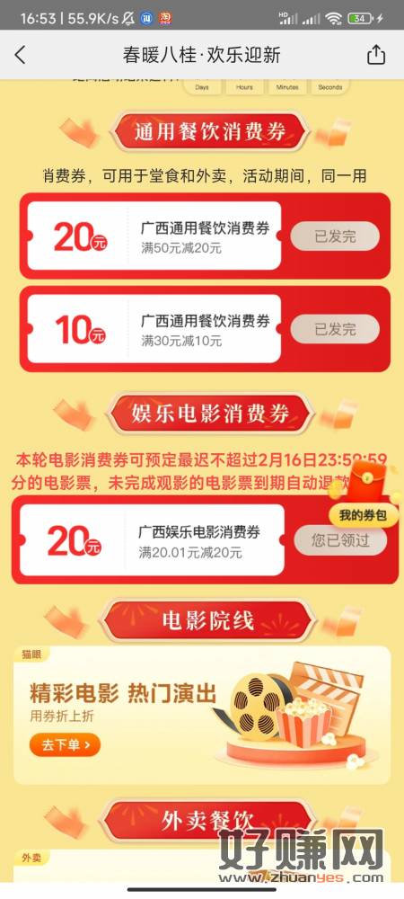 支付宝积分兑换2+1元食神卡爆涨券 7天有效