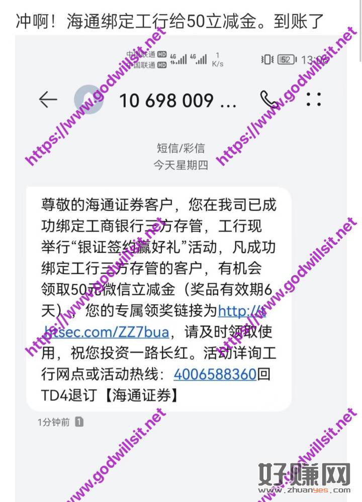 海通证券 绑定工行2类卡,奖励50元工行立减金,老哥们,冲啊,冲费它