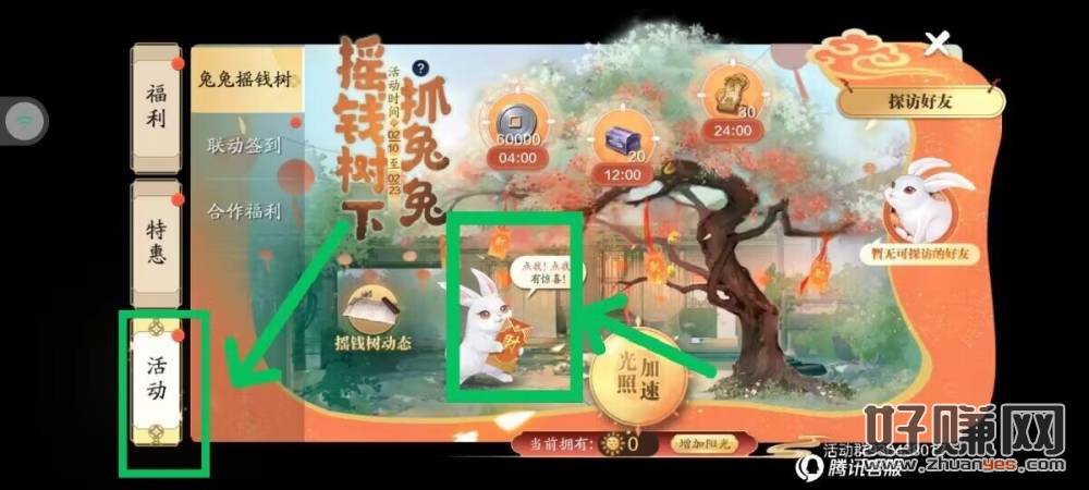路径:天涯明月刀手游-福利-活动-兔兔摇钱树-点兔兔(步骤看图)