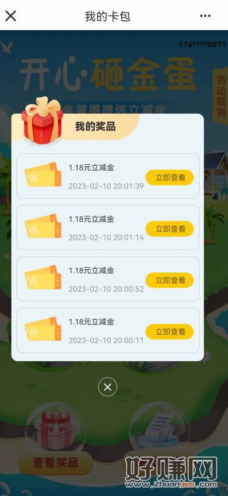 建行礼遇江苏 月用越有礼点进去下拉最后一个砸蛋,可砸蛋4次/0.1每次立减,有需要去