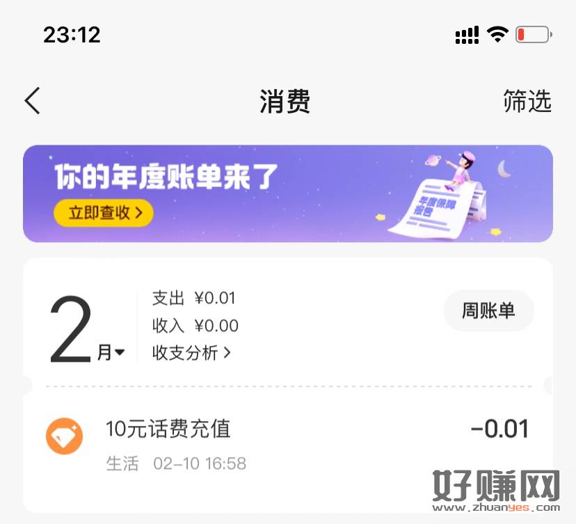 今天玩美团视频赚的时候,首页自动弹出0.01充值话费,觉得0.01也没什么就试了一下,没想到真的到了,这个好像是幸运用户或者老用户回归有入口