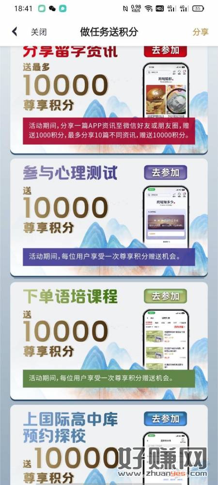 跨境go app-尊享-横幅‘轻松拿10万 积分’-进去做任务,前四个任务很简单,能得4万积分,可以兑换各种视频会员,23000就能兑3个月爱奇艺,出平台40毛,剩下的积分后面可能还能兑换。