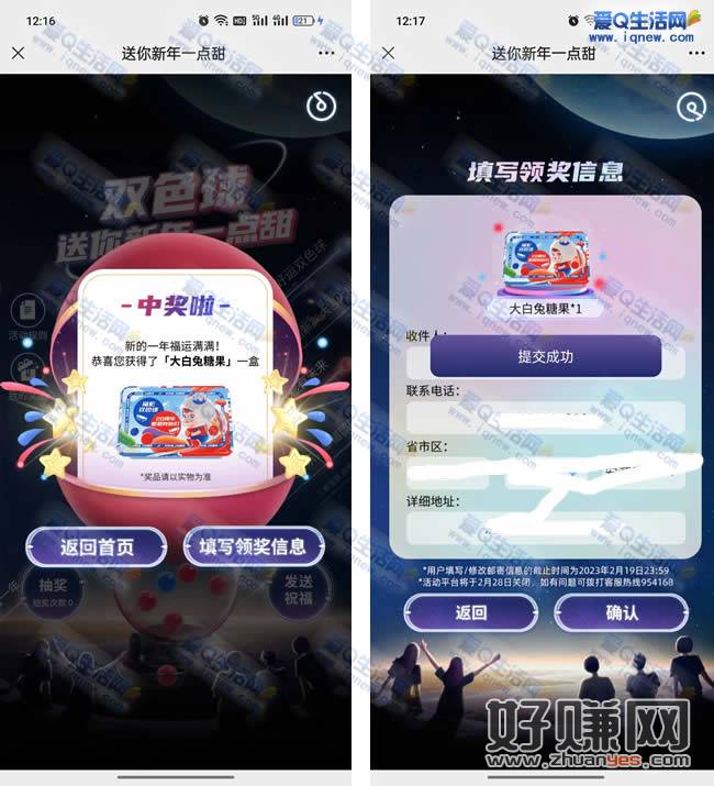 亲测中大白兔奶糖一盒 微信每日免费抽奖3次