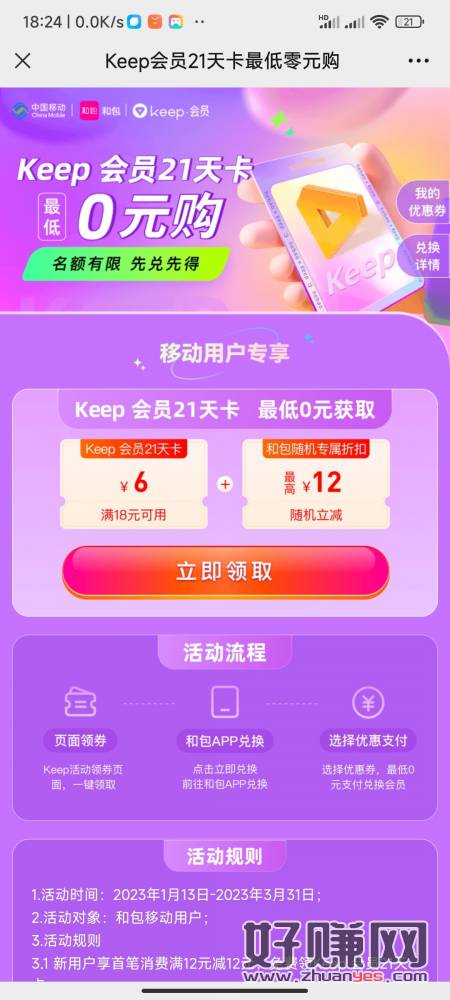 keep21天会员,0元购