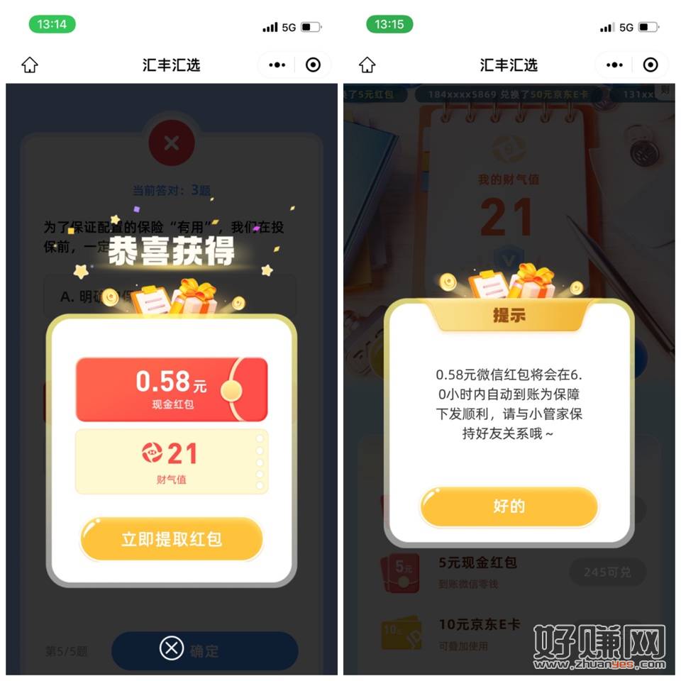接上一条 汇丰答题的。必得0.58。6小时内到账 要添加公众