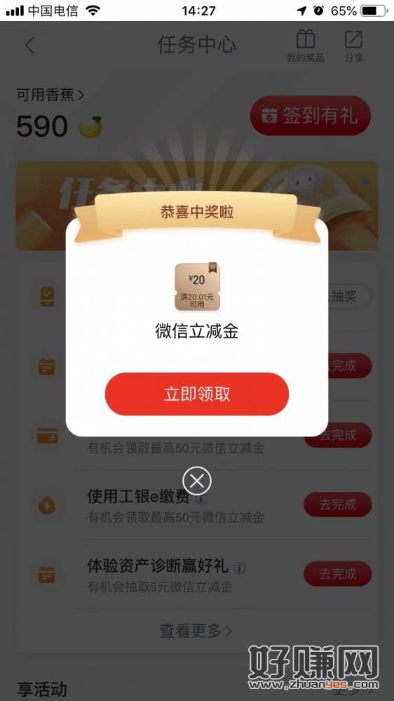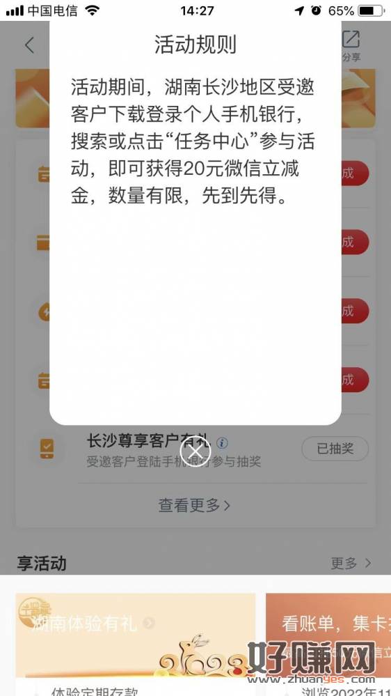 今天登陆工行APP时弹出个抽奖提示,长沙的可以登陆看看