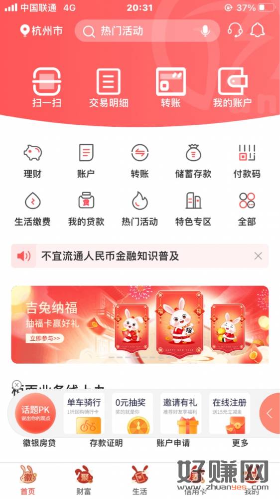 徽商银行,横幅吉兔纳福,翻卡 规则说是不必中哈,可以助力