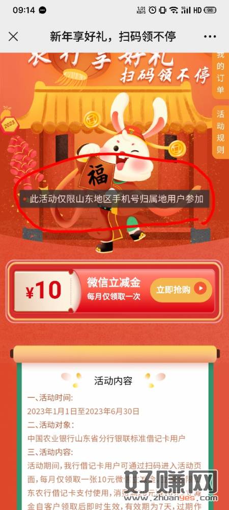 山西农行,10立减金,符合的去