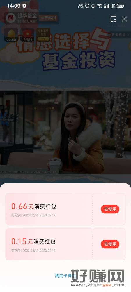 支付宝搜银华基金点动态进直播间点左上角抢福利